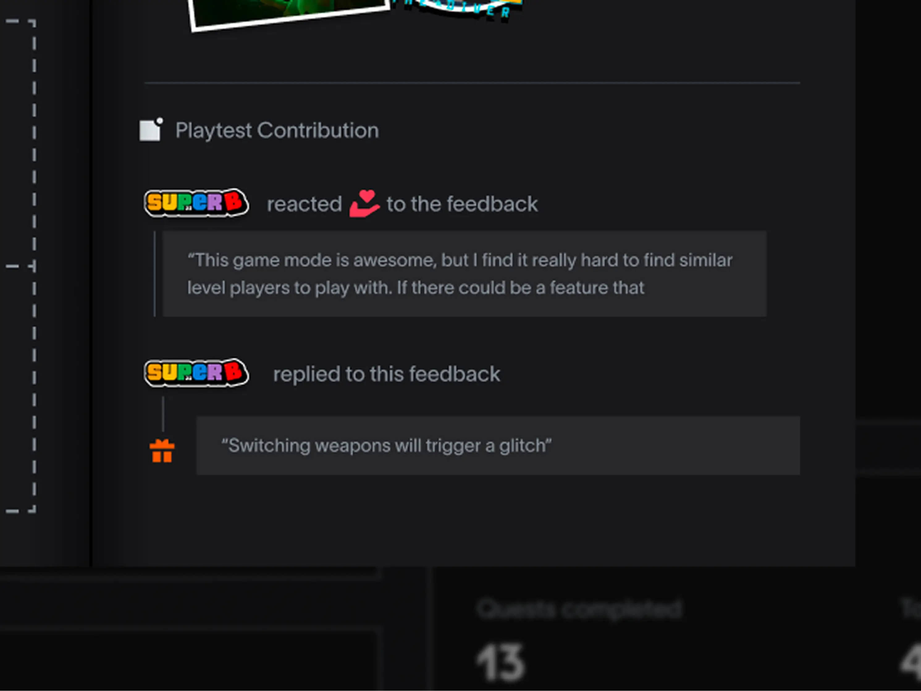 The playtesting feedback will make their way into the game makers for the ultimate recognition.